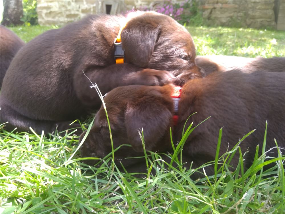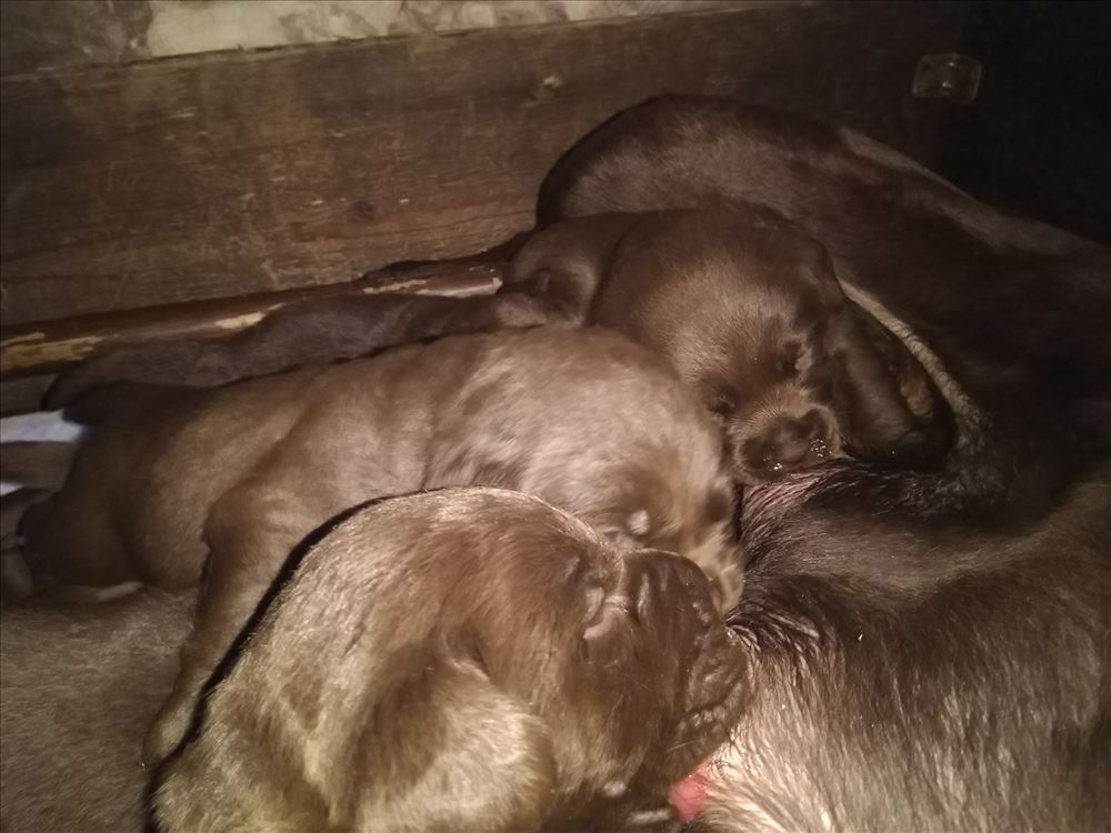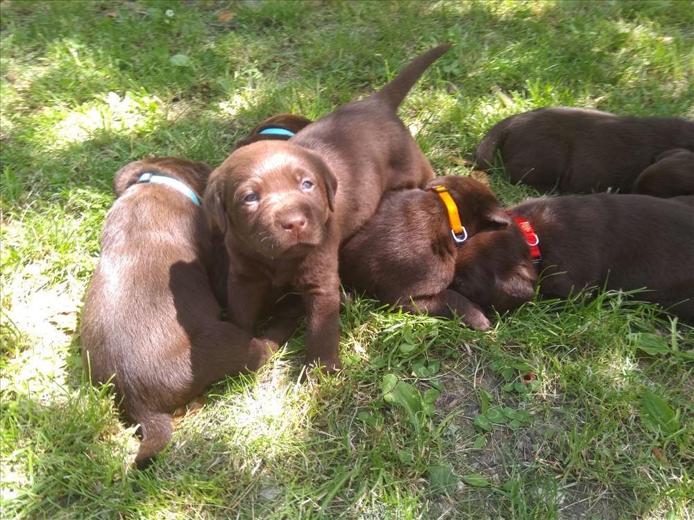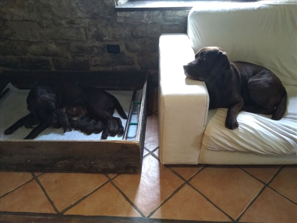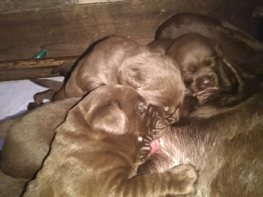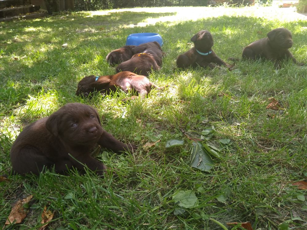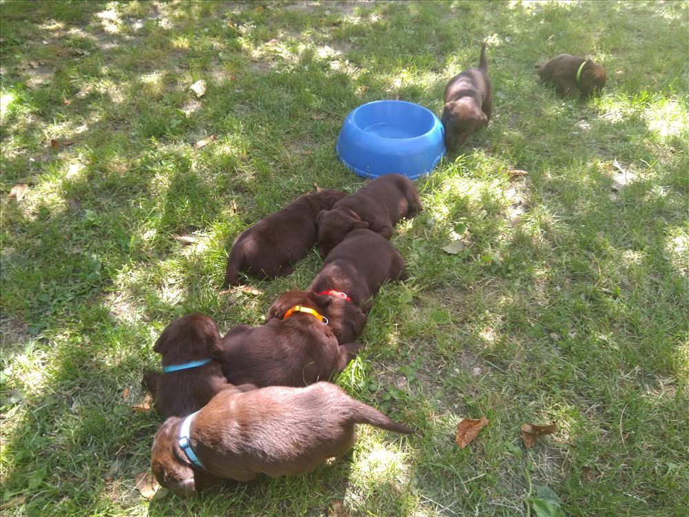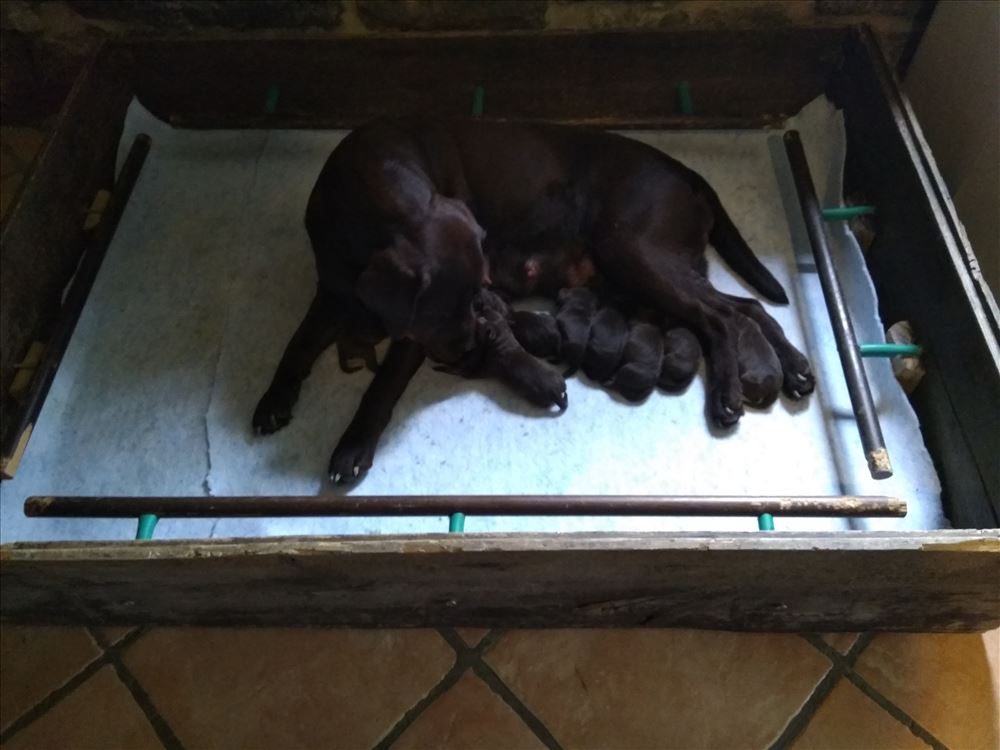 Ecco il frutto del grande amore tra Mina e il suo partner Hartung! 8 bellissimi cuccioli chocolate, 5 femmine e 3 maschi.