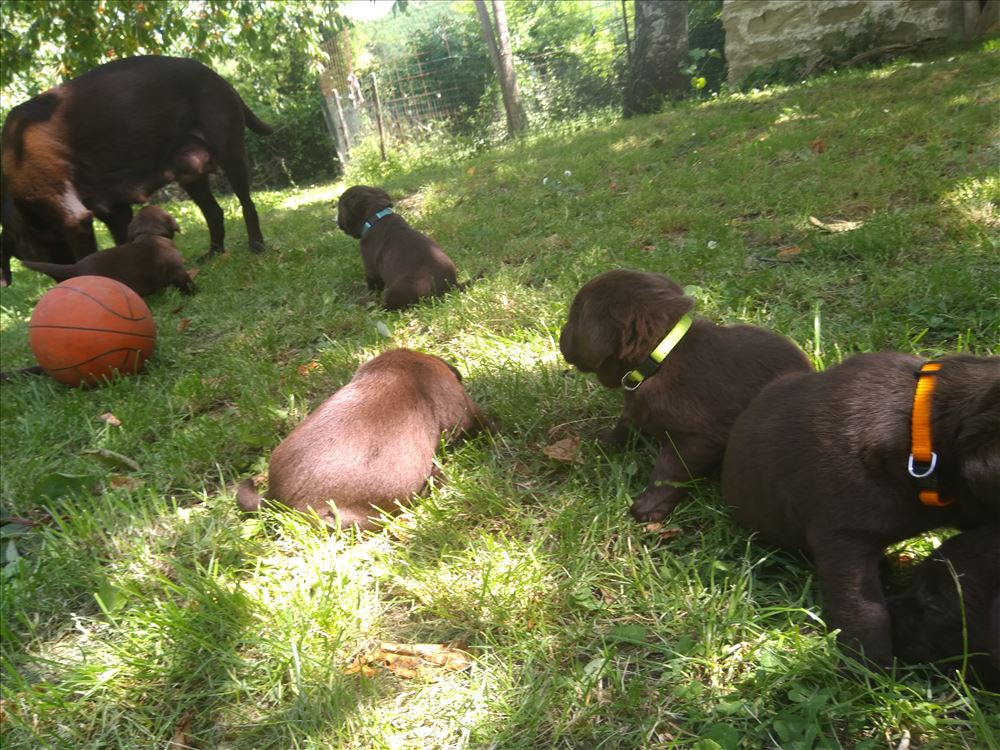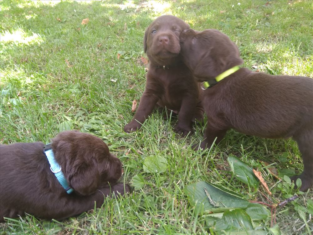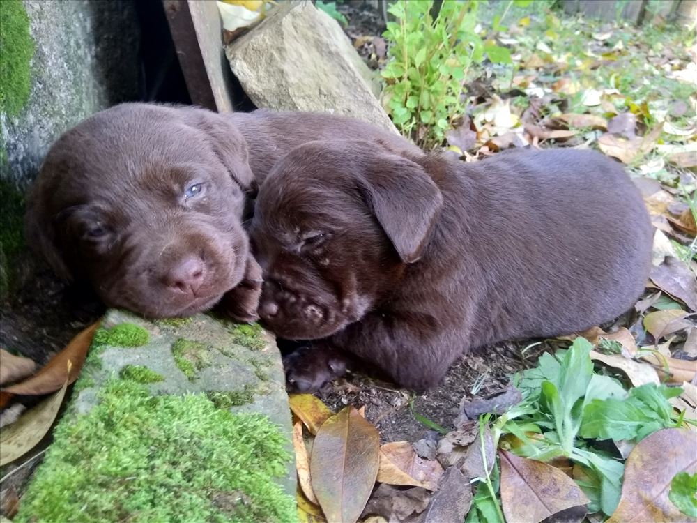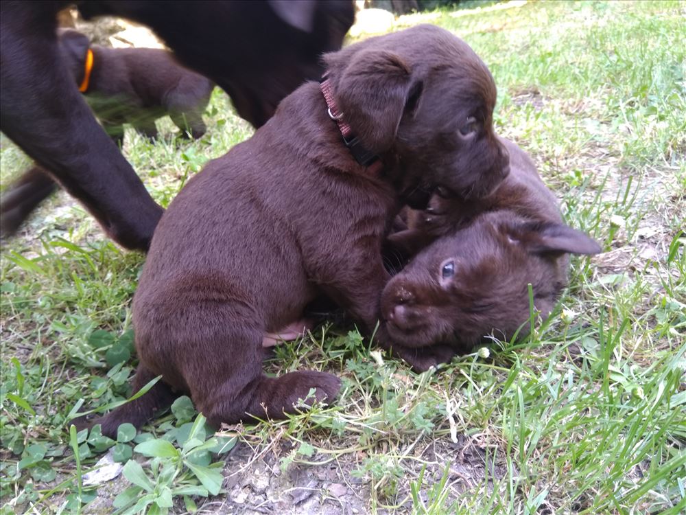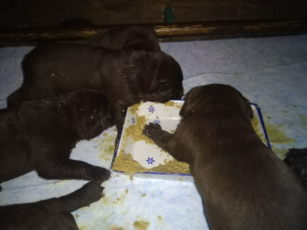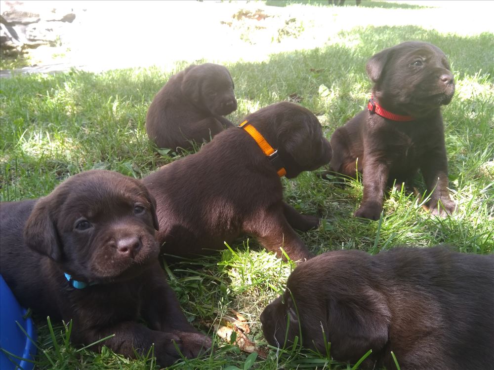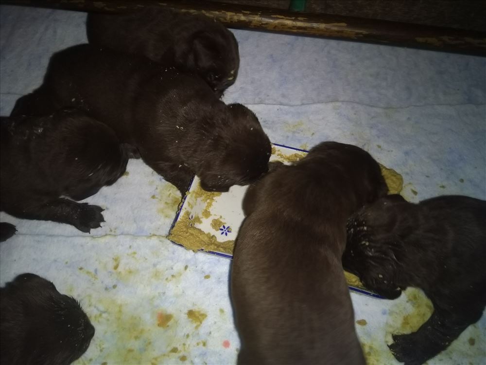 Ecco il frutto del grande amore tra Mina e il suo partner Hartung! 8 bellissimi cuccioli chocolate, 5 femmine e 3 maschi.